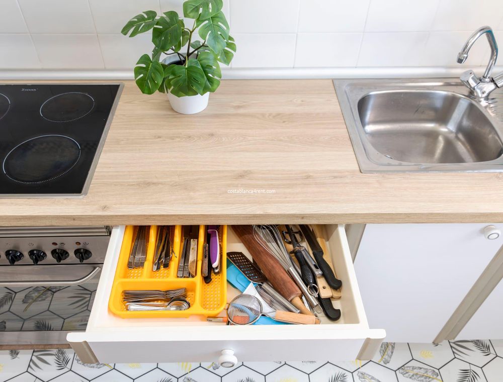 . Great flat of 60m2, bright and newly renovated in the Poniente beach, La Cala area, with everything you need to live, sunny all day. Consists of 1 bedroom, 1 bathroom, kitchen and utility room, lounge-dining room and terrace. Prestigious urbanisation with tennis court, swimming pool, communal parking and concierge