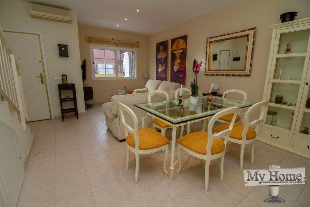 Beautiful duplex in Meloneras. The property consists of two bedrooms, two bathrooms, living/dining room, separate kitchen and large garden with terrace. It is located in a well kept complex with communal pool, tennis court and private parking.