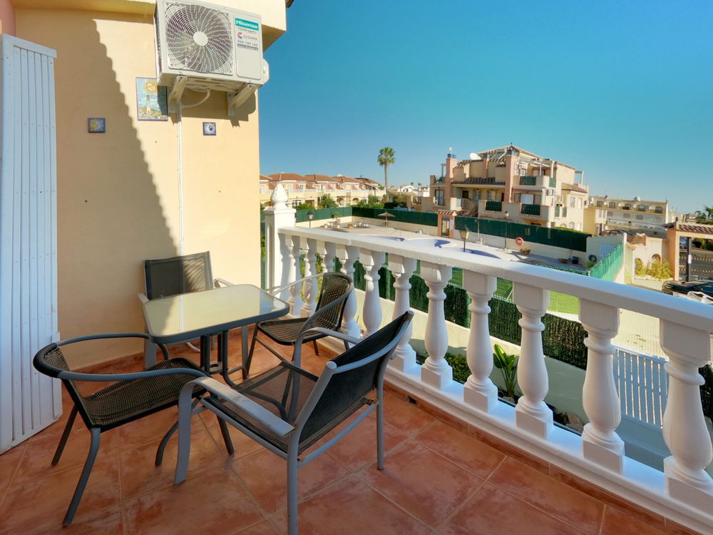 A two bedroom, cozy top floor duplex with a good size balcony and private solarium. There are numerous bars and restaurants just a few minutes away and the famous Zenia Boulevard shopping centre is a short drive away. The blue flag beaches of La Zenia, Campoamor and Cabo Roig are just 10 minutes drive.