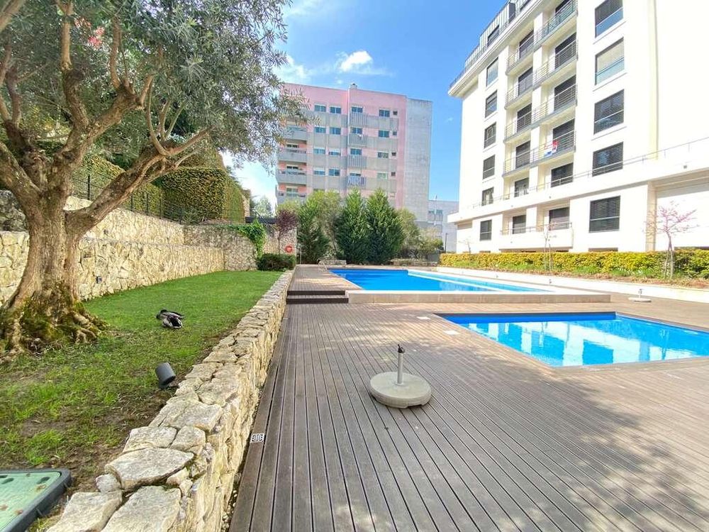 Apartamento T3 com móveis em condomínio fechado com piscina comum, parque infantil, jardim, segurança e sala de convívio.