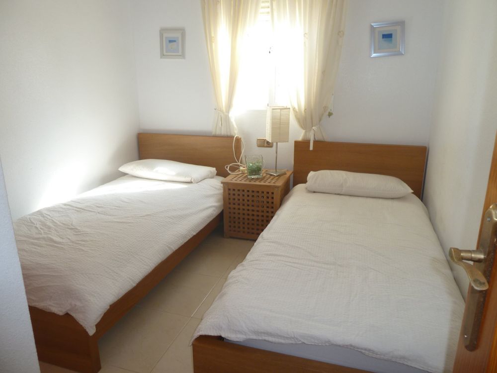 A lovely two bedroom, two bathroom quad style villa with private solarium situated in the Playa Golf Urbanisation. The property has a lovely, easily managed garden, is full of light and easy to make your own home. There are three 18 hole championship golf courses within 10 minutes drive and just 5 minutes from the beaches of the Orihuela Costa. There are numerous bars and restaurants within walking distance.
