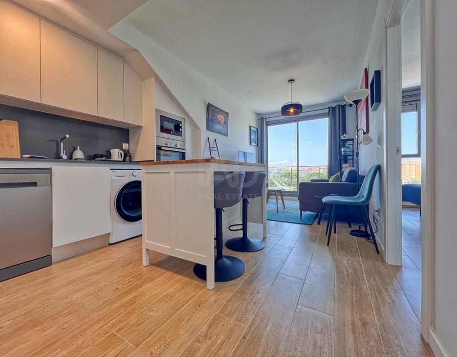 3D Virtual Tour available upon requestWe are pleased to present this exceptional long-term rental opportunity: a modern and spacious apartment of 82 m, located in the prestigious Marina Real III urbanisation in Denia. This recently built residential complex is renowned for its excellent amenities and high standard of living, offering residents access to beautifully maintained common areas, a large swimming pool, a fully equipped gym, and a welcoming social club.The apartment is thoughtfully designed to combine comfort with functionality. It consists of a bright and inviting living-dining area with an American-style kitchen, fully furnished and equipped with all necessary appliances for everyday convenience. The property offers a large bedroom with en-suite bathroom, providing privacy and comfort.From the living area, sliding doors lead out to a generous balcony, ideal for enjoying morning coffee or al-fresco dining. A private staircase connects the balcony to the exclusive rooftop terrace, which boasts breathtaking panoramic views of Denia Castle and Montg mountain. This unique space is perfect for sunbathing, relaxing, or hosting barbecues with friends and family.The apartment is equipped with centralized hot and cold air conditioning, ensuring maximum comfort throughout the year. In addition, the rental includes a private underground parking space and a storage room, providing extra convenience and security.The location of Marina Real III is truly privileged. The property is situated within walking distance of Denias vibrant town center, the picturesque port, and the popular Marineta beach. All essential services, such as supermarkets, restaurants, shops, and public transport, are close by, making this apartment an ideal choice for those seeking both tranquility and accessibility.This property represents a fantastic opportunity to enjoy Mediterranean living in a modern home with excellent facilities.