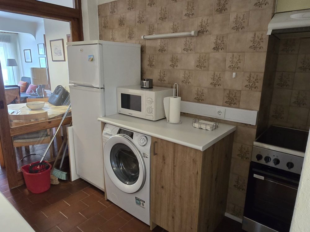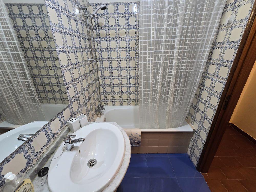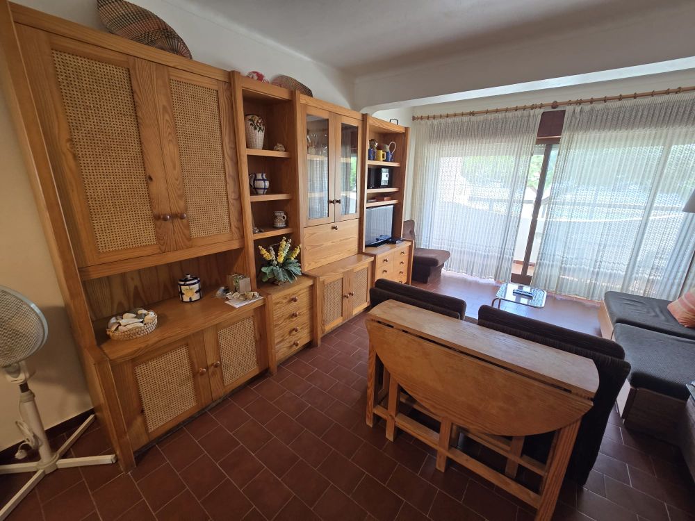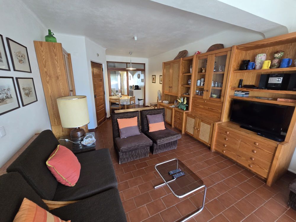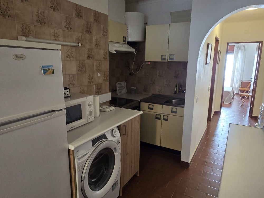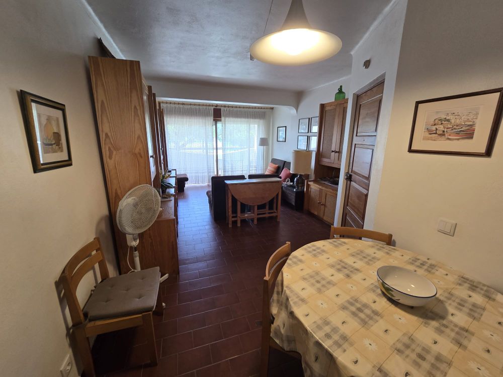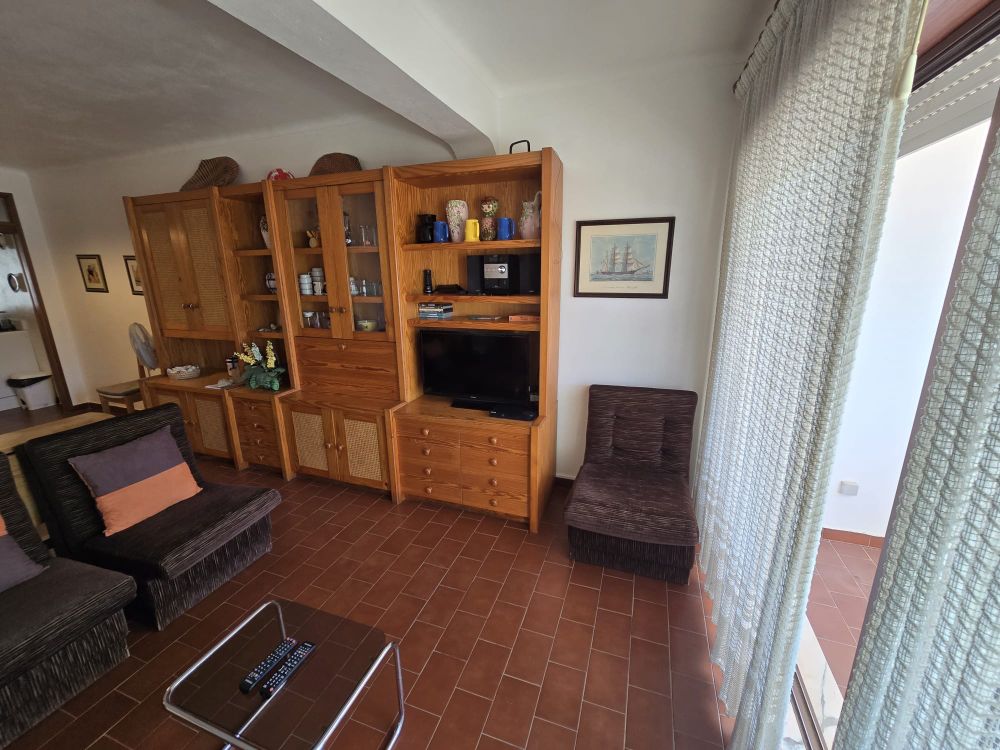 A entrada do apartamento diretamente para a sala comum com a cozinha à esquerda e um pequeno corredor com a casa de banho à esquerda e o quarto com um pateo. A sala comum tem acesso a uma varanda coberta com vista mar e porto de abrigo dos pescadores de Albufeira. O apartamento está mobilado e será arrendado desta forma, no mínimo de um ano.