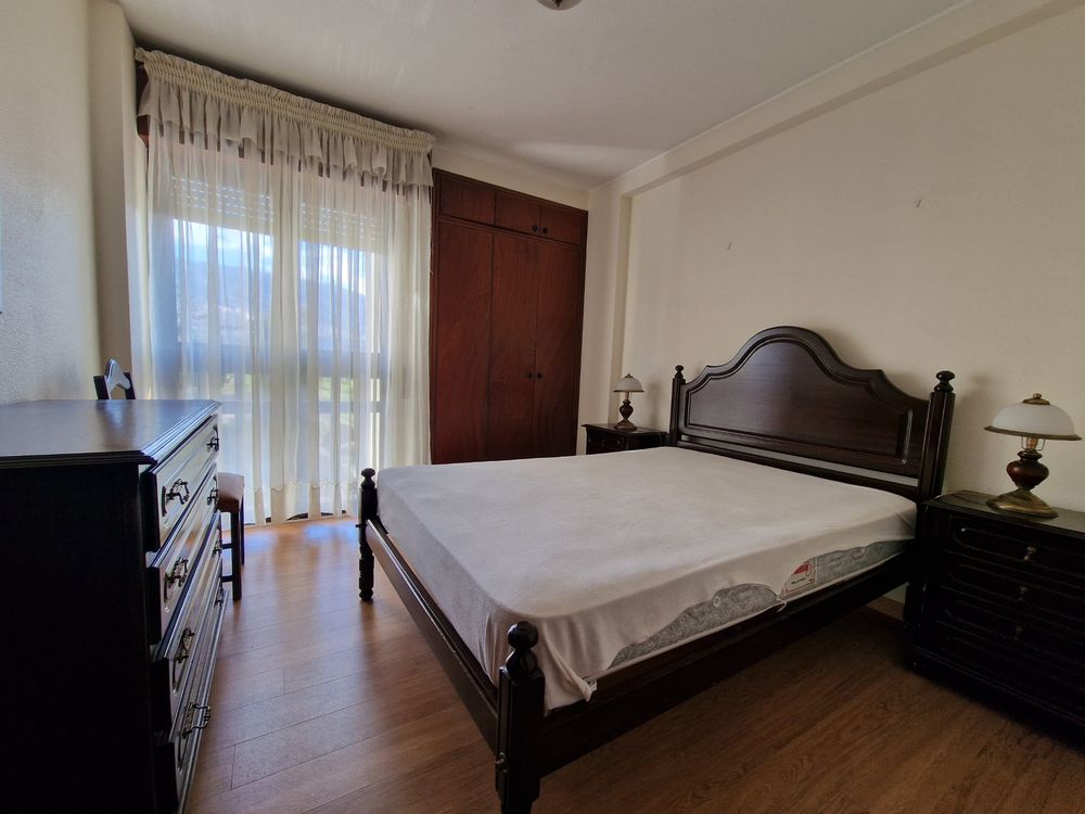 O apartamento é composto por três quartos amplos, duas casas de banho modernas, uma cozinha totalmente equipada e uma sala de estar espaçosa com grandes janelas que proporcionam uma vista panorâmica sobre a cidade do Funchal.