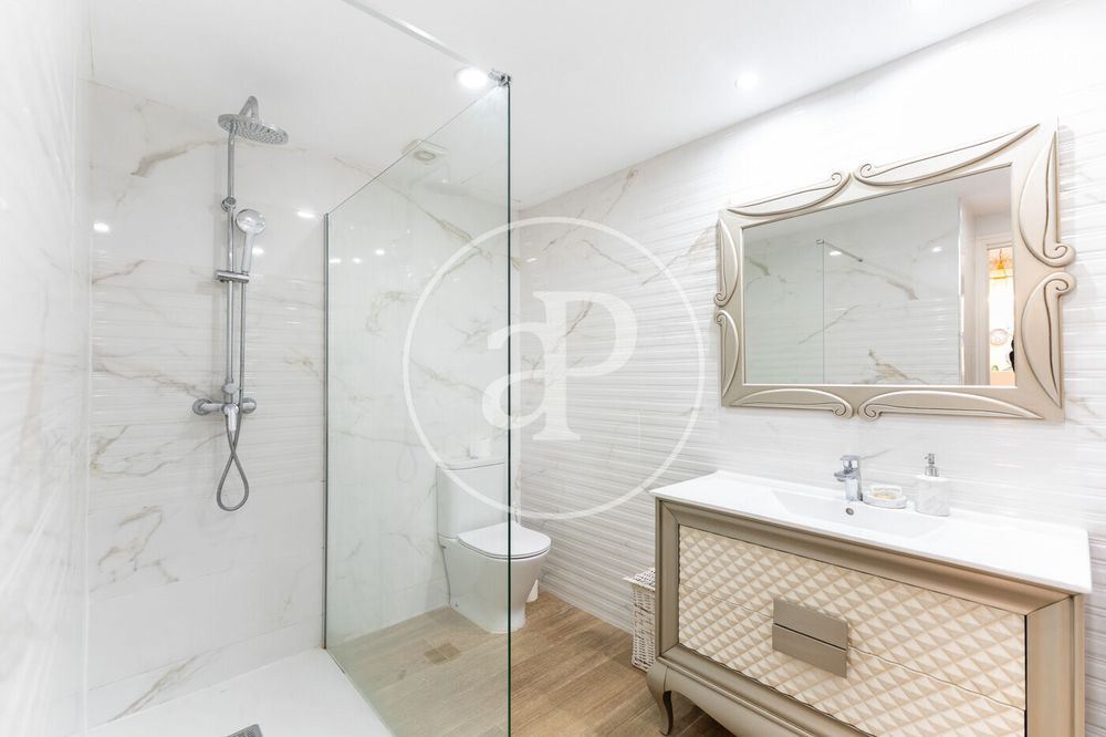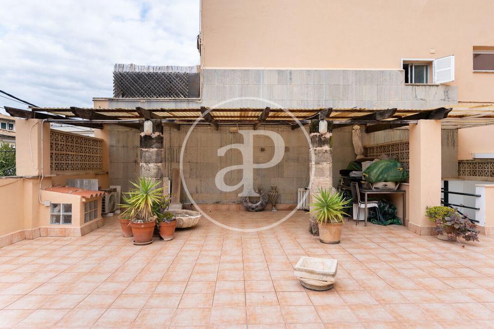 This 106 m² property located in San Agustín stands out for its comfort and brightness, offering a Mediterranean lifestyle in a privileged setting. It features a welcoming 20 m² terrace and a private 90 m² solarium, ideal for enjoying the sun and outdoor moments. Inside, there is a spacious living-dining room with direct access to the terrace, creating the perfect space to relax or entertain guests. From here, there is convenient access to the communal swimming pool. The kitchen, independent yet open to the living area for greater functionality, is fully furnished and equipped, and includes a practical utility area. The sleeping area offers two double bedrooms with fitted wardrobes and en-suite bathrooms—one with a bathtub and the other with a shower tray—as well as an additional single multipurpose room, perfect as an office, playroom or children’s bedroom. From the entrance, a spiral staircase leads to the private solarium where you can create your own oasis. Notable features include parquet flooring, double-glazed windows and hot-cold air conditioning via split units. The property is rented fully furnished and ready to move into. The location is unbeatable: opposite the prestigious Calanova Sports Club, just minutes from Bendinat Golf, surrounded by shops, restaurants, health centres and with excellent bus connections to Palma city centre. This is a short-term rental (minimum 6 months, maximum 11 months), with community fees, property tax (IBI) and water included in the price. Small pets are welcome. Can you imagine living here? We look forward to your call.