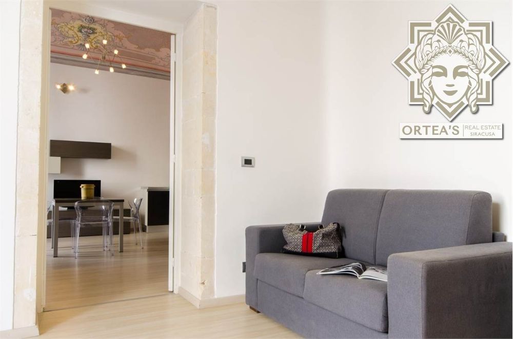 Proponiamo in affitto appartamento bilocale arredato nell'isola di Ortigia ristrutturato miscelando sapientemente memoria storica e finiture moderne e caratterizzato da tetti a volte dipinti con la tecnica a secco originali e che contribuiscono a dare risalto a questo appartamento molto luminoso e con affacci sulla centrale via Roma con vista teatro. L'appartamento dispone di due grandi ambienti; un ampia zona living con cucina a vista ed una grande camera da letto con bagno. Nelle immediate vicinanze oltre al teatro comunale, piazza del Duomo, altre piazze con chiese, musei, locali commerciali tra cui una farmacia e negozi oltre a locali di ristorazione dove assaporare i migliori piatti della cucina siciliana.