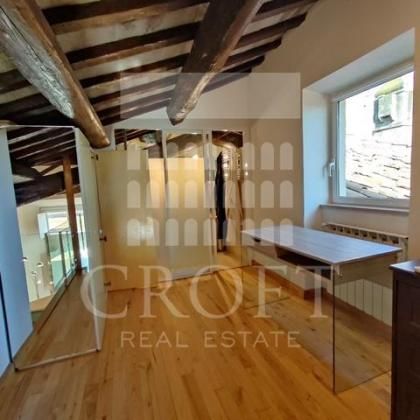 L’appartamento disposto su due livelli si compone al primo livello di un'ampia zona giorno con cucina a vista. Il soggiorno, arredato in stile moderno, è il vero cuore della casa, caratterizzato da un imponente soffitto alto 5 metri con le originali travi in legno a vista, che conferisce un'atmosfera calda e di grande carattere, i pavimenti in parquet aggiungono un tocco di eleganza naturale, mentre l'aria condizionata assicura un comfort ideale in ogni stagione. L'abbondante luce naturale inonda lo spazio grazie a tre ampie finestre, che offrono una vista indimenticabile sui suggestivi tetti di Roma e sui suoi monumenti. Il soggiorno è dotato di un pratico divano letto e la presenza di un bagno di servizio al piano lo rende perfetto per accogliere gli ospiti. Completa la zona giorno la moderna cucina a pianta aperta completamente attrezzata situata in un'alcova dello spazio abitativo. Dotata di lavatrice, lavastoviglie, piano cottura e grande frigorifero e tanto spazio per riporre gli oggetti.