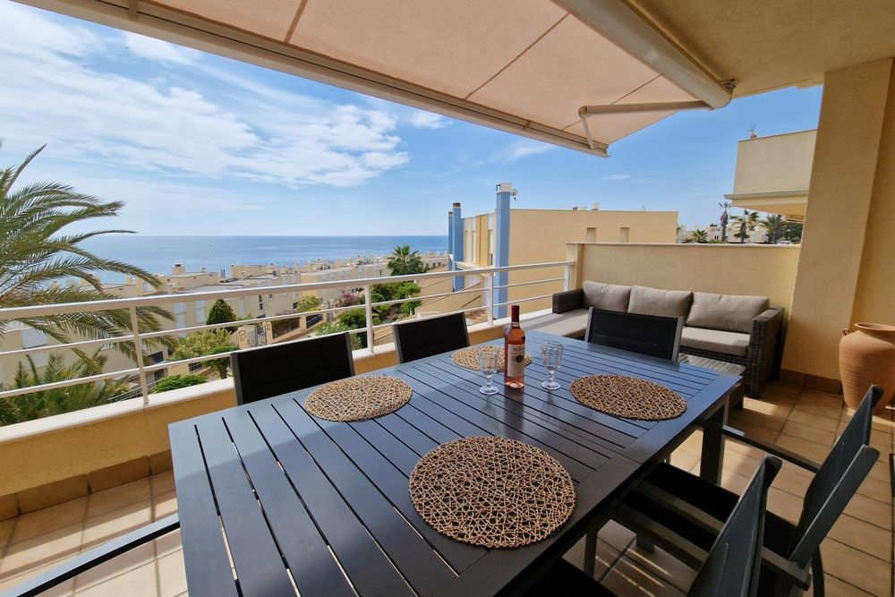 Chalet adosado de esquina con estupendas vistas al mar ! Residencial Calas de Campoamor en Calle Arturo Pérez Reverte. Vivienda de 110 v2 , con 3 dormitorios y 2 baños , cocina independiente con lavadero, salón con chimenea , terraza de 15 m2 con vistas al mar . La vivienda esta recientemente reformada , amueblada y equipada con todos los electrodomésticos. La vivienda tiene Wi-Fi , 3 maquinas de aire acondicionado/ calefacción, ropa de cama y toallas . Capacidad de alojamiento hasta 8 personas. Residencial despone de piscina comunitaria , hay plaza de aparcamiento en el garaje subterráneo. Distancia de la playa 150 metros . Supermercado y la zona con los bares y restaurantes esta en 200-300 metros de la vivienda.~~