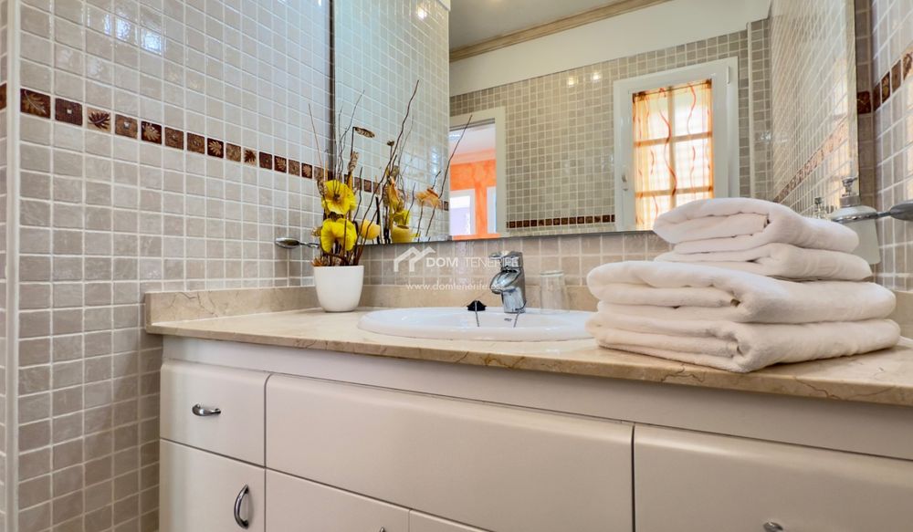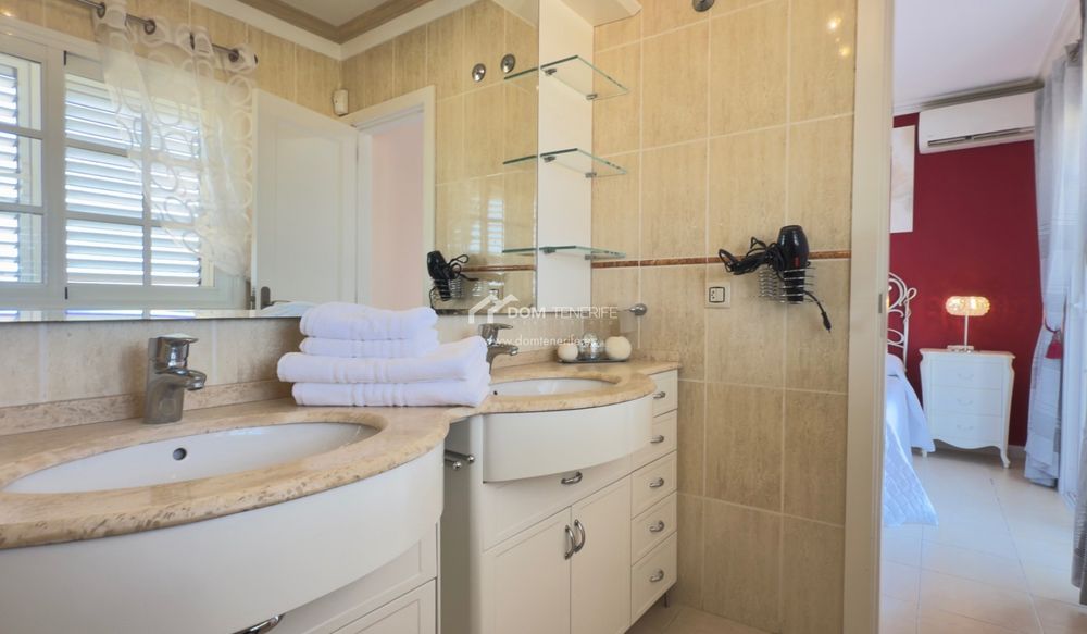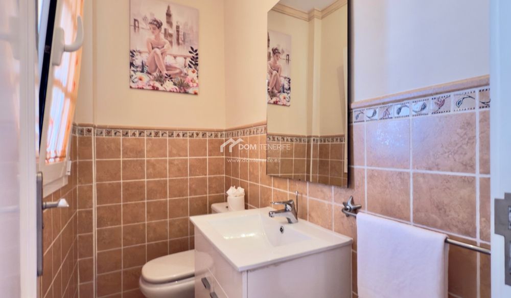 , esta luminosa vivienda ofrece comodidad y funcionalidad. La planta principal está rodeada por un espacio exterior privado que incluye un bonito jardín, zona chill-out y solárium, ideal para disfrutar del clima soleado de Tenerife durante todo el año, con la posibilidad de instalar una piscina privada. En el interior, el diseño de planta abierta cuenta con un amplio salón, cocina moderna y aseo de cortesía. La distribución fluida y la abundante luz natural crean un ambiente acogedor y agradable. En la planta superior se encuentran