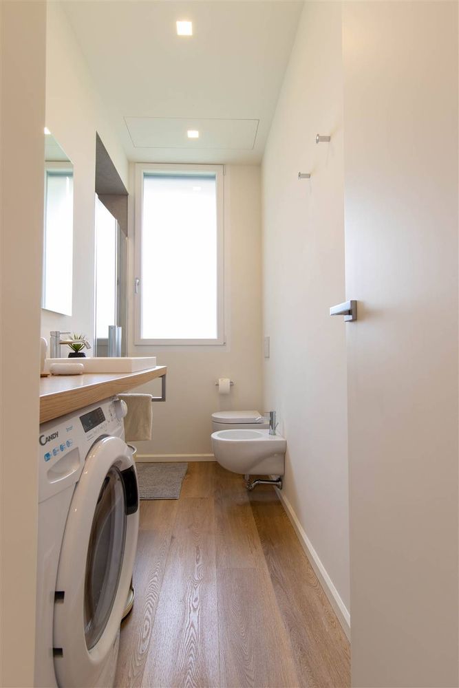 ampio bagno con doccia e lavatrice/asciugatrice, camera matrimoniale.