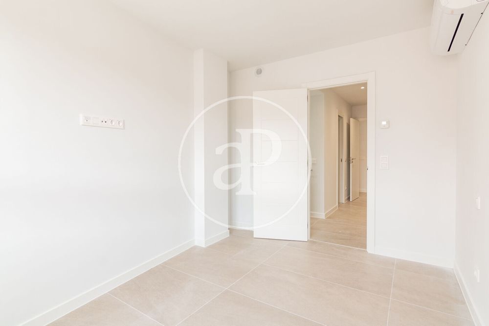 Brand New 3 Bedroom Penthouse for rent built with energy rating A. Distribution: The property is distributed as follows: an entrance hall leading to a spacious living-dining room with access to a private terrace, an independent kitchen fully furnished and equipped with high-end appliances (induction hob, refrigerator, oven, microwave, dishwasher and washing machine), plus a practical clothesline. The master bedroom has an en-suite bathroom and a spacious 3-body closet. The other two bedrooms are also spacious and have built-in closets, and there is an additional full bathroom. The property includes a parking space and a storage room. Energy Efficiency A: Committed to sustainability, the house has an aerothermal system, underfloor heating and cooling, PVC carpentry and a double-flow ventilation system, which provides an energy rating A. This guarantees a more sustainable and efficient home, with lower energy consumption and considerable savings on bills. Leisure Facilities: Enjoy your leisure time without leaving home. The property is part of a 155 m² gated community with a garden, communal swimming pool and fully equipped gym, ideal for maintaining an active and healthy lifestyle. Location: Located in a quiet and well connected area, the property is close to all the necessary services for day to day life: Shopping Malls: El Corte Ingles, Hipercor, Palacio de Hielo, Arturo Soria Plaza, Mar de Cristal, among others.