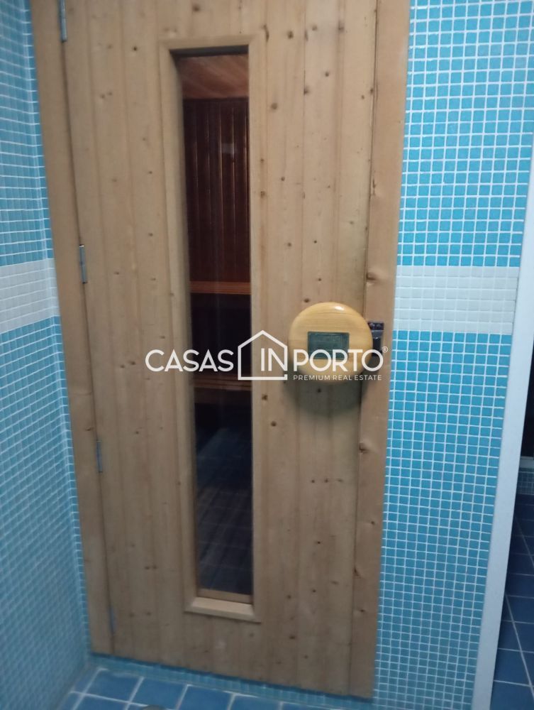 Piscina coberta. Hidromassagem. Ginásio. Banho turco. Sauna. Salão de festas com 124m2.
