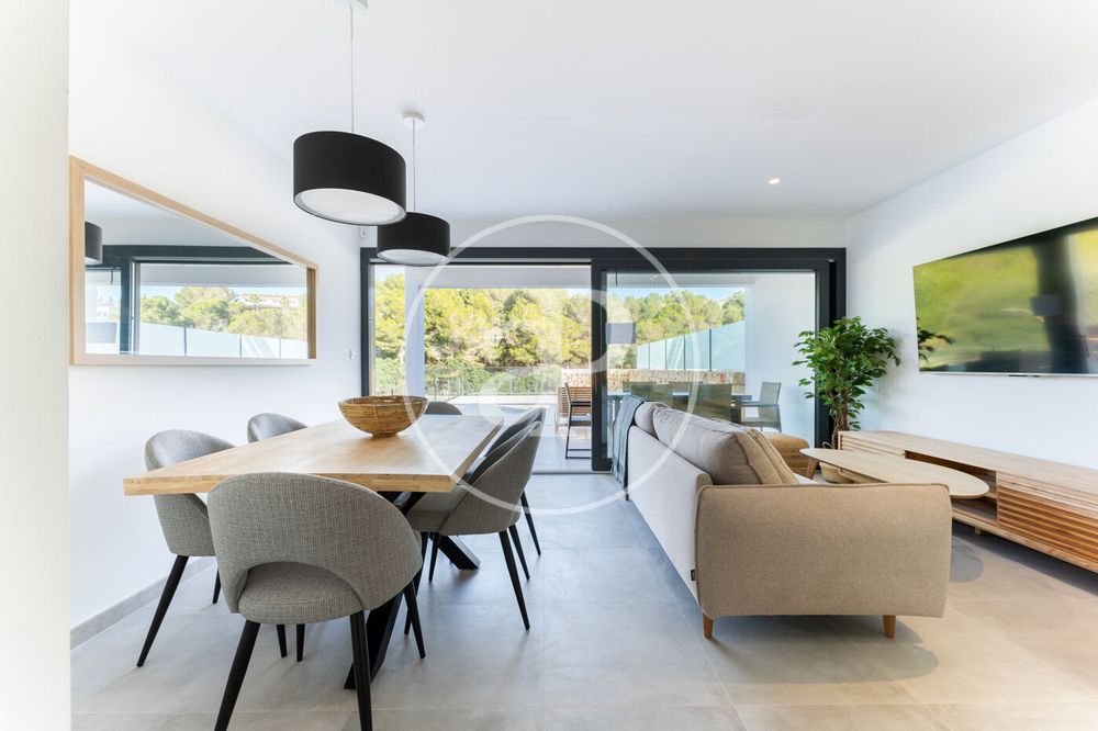 VARIABLE PRICE DEPENDING ON THE SEASON - CHECK THE RATE ACCORDING TO THE MONTH OF YOUR INTEREST Located in one of the most privileged areas of Mallorca, this impressive townhouse in Cala Mendia merges modern architecture, designer furniture and a privileged location just 100 meters from the sea. Its unique split-level distribution allows a double access: from the upper part, where it has a private parking, and from the lower part we find another entrance from the same street that leads us to the sea. Accessing from the first floor, we are greeted by a large terrace with private pool, a real oasis with panoramic views, ideal for relaxing or enjoying unforgettable evenings. The connection with the interior is fluid and bright, leading to a sophisticated living-dining room with high-end furniture and large windows that flood the space with natural light. The open-concept kitchen features state-of-the-art integrated appliances, while an elegant hallway leads to a guest bathroom and a riad-style interior courtyard, an architectural gem that provides an exclusive and serene ambiance. Going up to the upper floor, we find three magnificent rooms designed for maximum comfort. Two of them have double beds and the third with two single beds, all with en suite bathroom and top quality finishes. From this floor, you can access directly to the upper street, facilitating mobility and providing even more privacy to the house. This property is a perfect combination of luxury, functionality and design in a privileged enclave of the island. If you are looking for an exclusive home with unparalleled views, private pool and just steps from the sea, this townhouse is a unique opportunity. Contact us for more information and come and discover this dream corner in Cala Mendia.