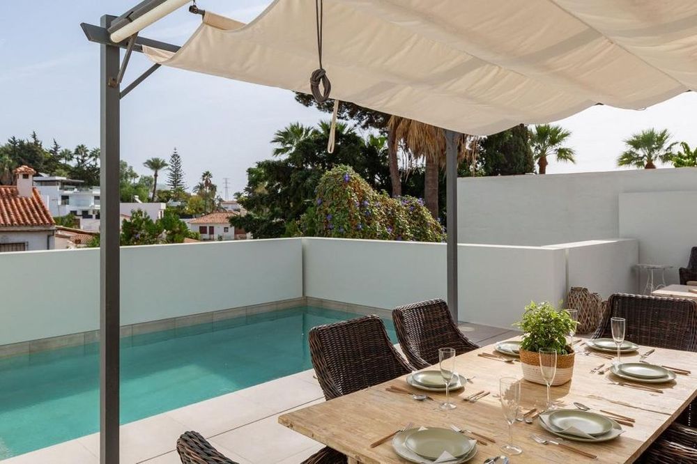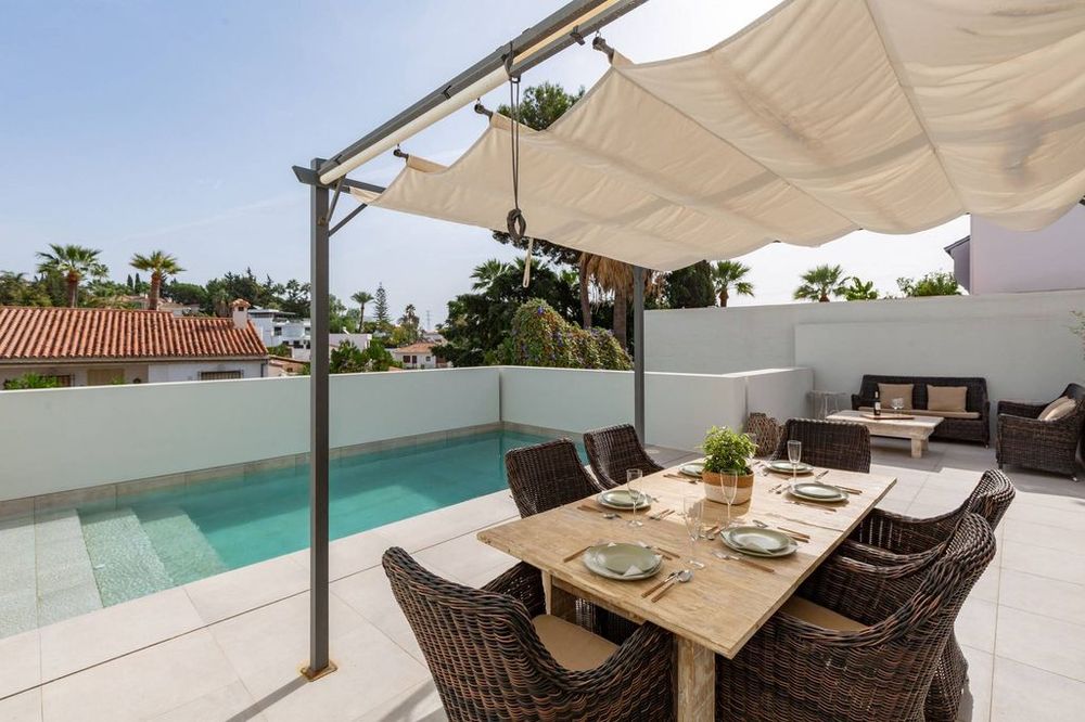 3 BED 4 BATH MODERN VILLA IN THE HEART OF NUEVA ANDALUCIA WITH BRAND NEW FURNISHINGS. THE VILLA HAS A BIG OPEN SPACE LIVING AND DINING ROOM WITH A FULLY EQUIPPED KITCHEN WHICH FLOWS TO THE OUTDOOR LIVING SPACE PERFECT FOR DINING, ENTERTAINING, SUN-BASKING AND SWIMMING IN THE PRIVATE SPARKLING POOL. THE VILLA ALSO HAS AN UPSTAIRS TERRACE PERFECT FOR CATCHING THE SUN ALL DAY LONG. THE PROPERTY IS WITHIN WALKING DISTANCE TO SHOPS AND RESTAURANTS AND JUST 10 MINUTES DRIVE FROM THE FAMOUS PUERTO BANUS. THE PROPERTY BEENFITS FROM BOTH AIR-CONDITIONING AND HEATING THROUGHOUT, FOR YOUR BEST COMFORT ALL YEAR ROUND.