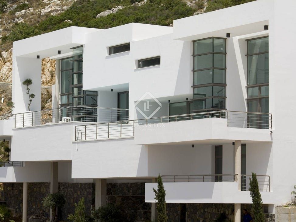 Lucas Fox presents a luxury villa for rent with 486 m total, 240 m interior and 246 m of terraces. With three floors and large windows, natural light fills the spaces. The first floor has a garage for two cars and a relaxation area with panoramic views of the sea and the mountains. The main floor houses the social areas: a living room, dining room and Open kitchen equipped with high-end appliances . In addition, it offers a guest toilet and access to a magnificent terrace with a pool and chill-out area, with impressive views. On this floor is the main bedroom with integrated dressing room and luxurious bathroom with overflowing bathtub and hydromassage shower, all with panoramic views thanks to the glass architecture. On the lower floor there are three double bedrooms, two with access to a terrace to enjoy the spaciousness and natural light, ideal for relaxing. It also has a luxurious full bathroom . The villa stands out for its modern construction and avant-garde interior design, prioritizing the comfort of the owners. It offers security with 24-hour surveillance and recording systems in the development. With double-glazed windows, underfloor heating, hot/cold air conditioning and a lift for accessibility, the villa is suitable for people with reduced mobility. Located in a quiet development in Altea Hills, it has an intrusion alarm. Altea is connected to the international airports of Alicante and Valencia, close to its beaches and the Don Cayo golf countryside . A few kilometers away is the Luis Campomanes sports club (Greenwich-Mascarat Marina), offering various nautical activities. Essentially, this villa, with its modern design, spacious spaces and amenities, offers a luxurious and secure residential experience, uniting the harmony of the natural environment with the comfort of modern living in Altea.