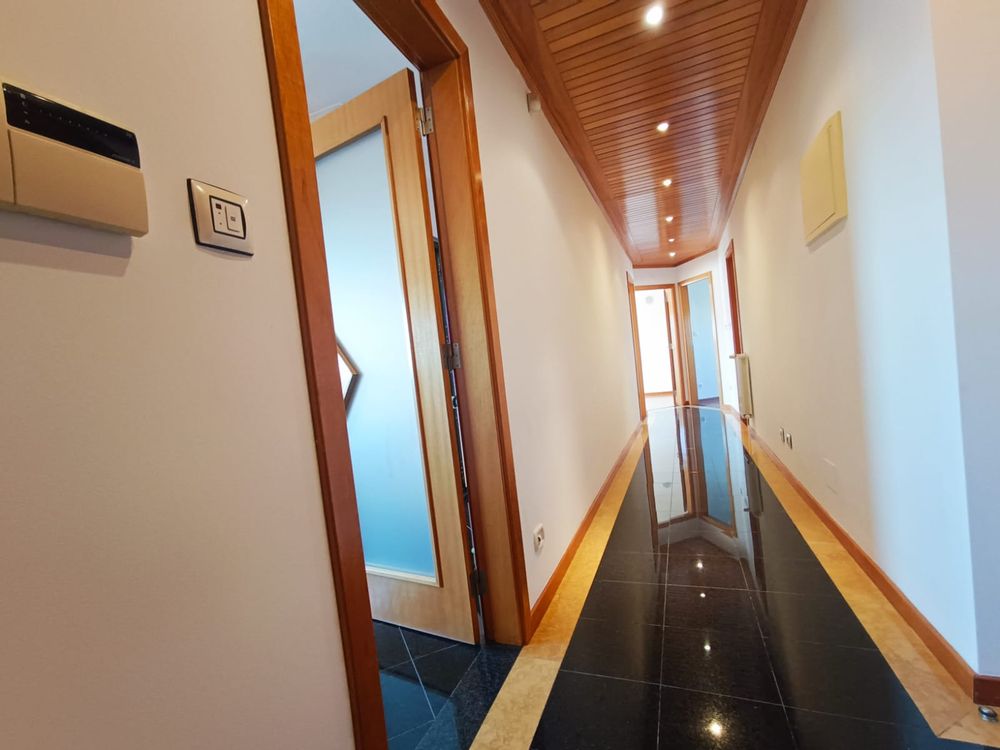 - Sala (37,25 m2) luminosa, com três janelas de vidro duplo e acesso direto ao terraço. (Pavimento em madeira nobre).