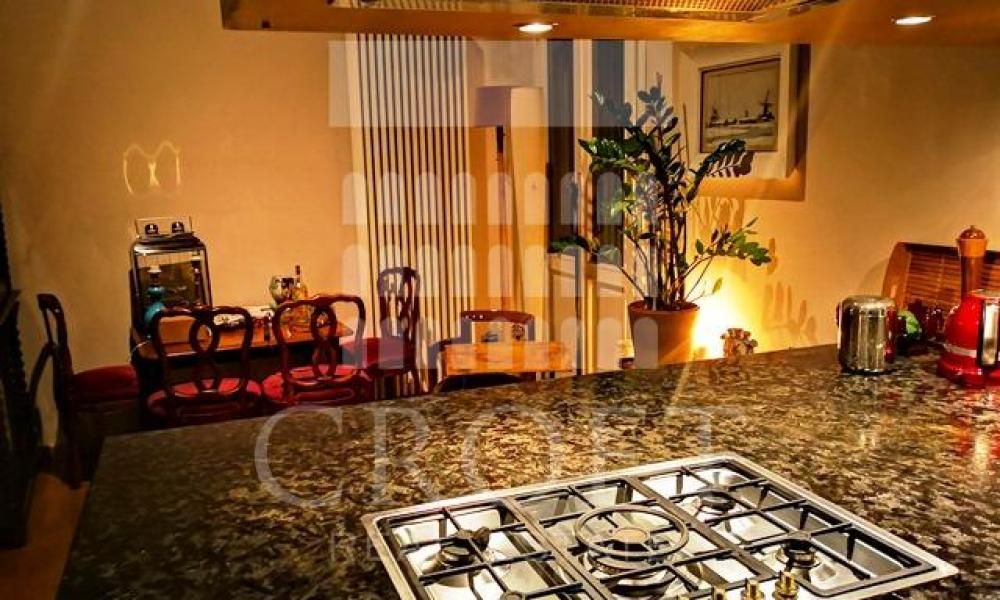 L'appartamento ti accoglie in un'atmosfera calda e raffinata, dove il design moderno si fonde armoniosamente con gli elementi storici dell'edificio. Il cuore della casa è un ampio e luminoso salone, arricchito da magnifiche travi a vista che ne esaltano l'altezza e il carattere. I pavimenti in parquet in rovere creano un'atmosfera accogliente e di grande pregio.