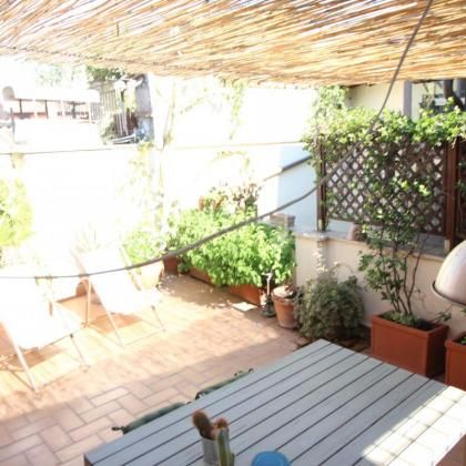 Le Tue Terrazze Private: Il vero fiore all'occhiello di questa proprietà sono le due ampie terrazze private. Un'oasi verde e rigogliosa, dove la vita romana si estende all'aria aperta. Qui potrai goderti momenti di puro relax, organizzare cene con gli amici, sorseggiare un caffè al mattino o semplicemente ammirare la vista mozzafiato sui tetti della città, immerso nel profumo dei fiori di bougainvillea. L'allestimento con un grande tavolo da pranzo e sedie a sdraio lo rende il luogo ideale per ogni occasione.
