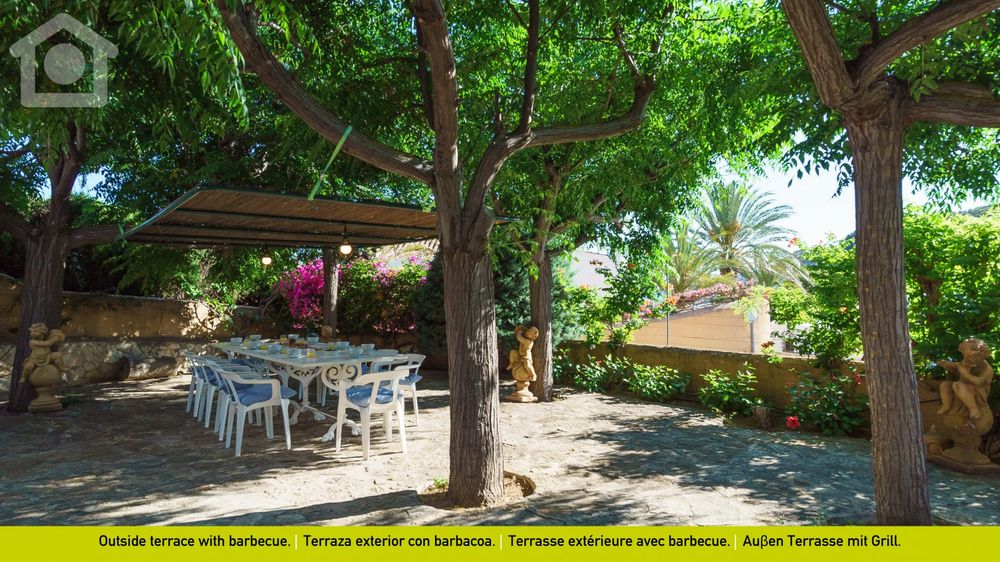 It has a large enclosed pool, a private paddle court, a barbecue area, a playground for kids, a large garden with many trees and parking for 2 cars. At the top of one of the houses, you will find a small solarium terrace, where you will be able to sunbathe and enjoy fantastic panoramic views of the sea and of the mountains.