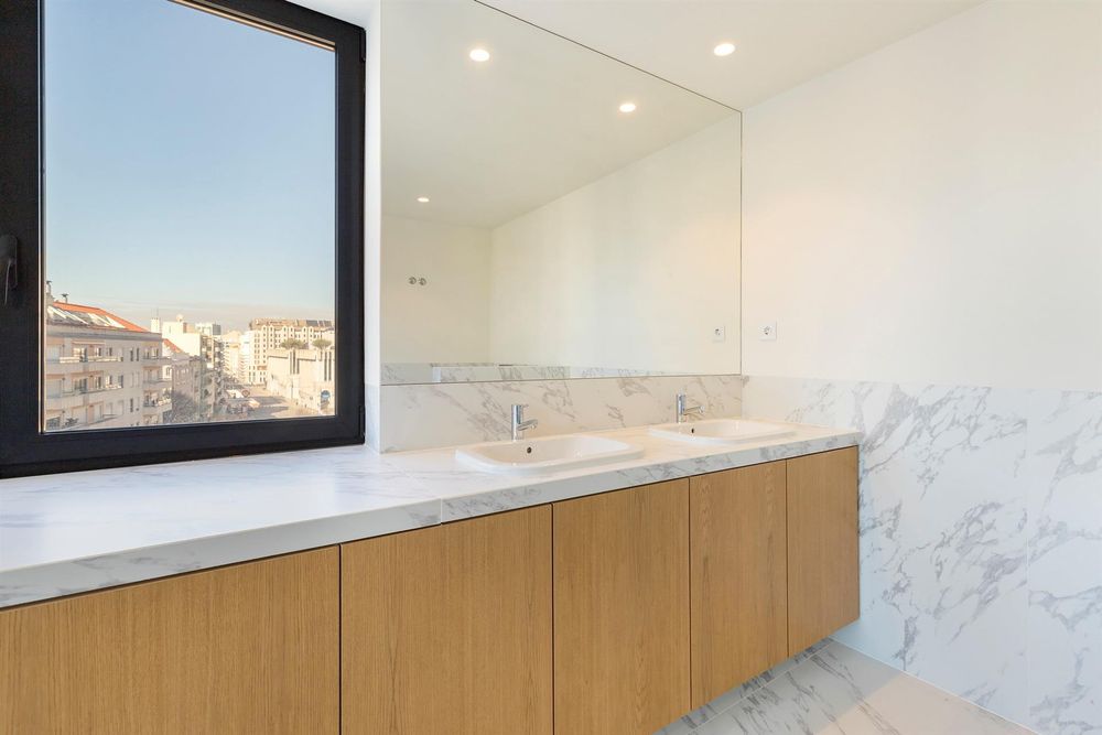 Com uma área bruta de 227 m2, este imóvel é banhado por luminosidade natural e vistas fantásticas da cidade. Na renovação foram utilizados materiais e acabamentos de altíssima qualidade. Possui sistema de ar condicionado em todas as divisões, proporcionando conforto em qualquer estação do ano. Inserido num edifício de 15 pisos com dois elevadores, concierge e segurança 24h, o apartamento oferece uma sala muito ampla, casa de banho social, cozinha nova totalmente equipada, com áreas muito simpáticas. Despensa, lavandaria e casa de banho completa de apoio. Ambas as suites, tem roupeiros embutidos e casas de banho completas, muito generosas