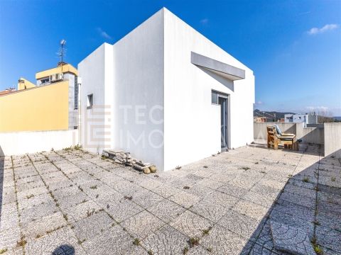 Um sal�o amplo com casa de banho e com acesso a um fant�stico terra�o com vistas panor�micas para a Serra de Valongo e Cidade.
