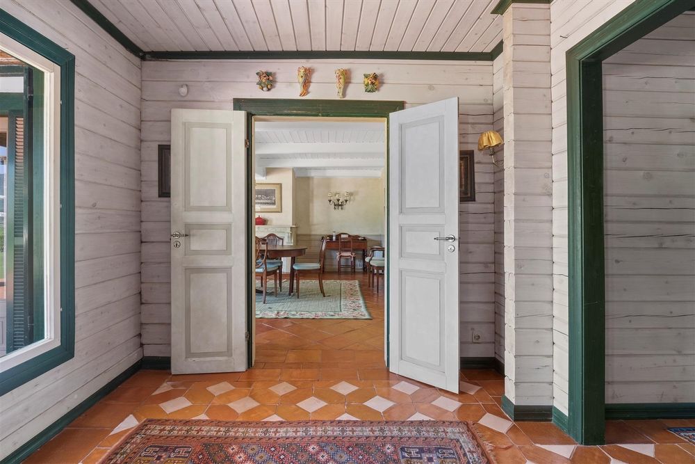 O interior desta moradia de arquitectura tradicional portuguesa evidencia o ambiente campestre espalhado pelos vários aposentos da casa. A casa, toda forrada a madeira, tem sete quartos, cozinha totalmente equipada, lavandaria, sala de estar e jantar com lareira e sala de TV.
