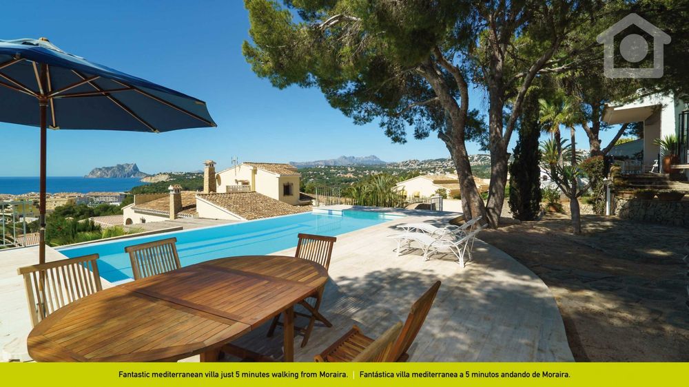Our ‘Sunny Hill’ villa for holiday rentals is situated on a small hill very close to Moraira. Its fantastic panoramic views of the sea, the mountains and the Ifach Rock will blow you away! It lies in tranquil urbanization within Moraira, just 300m away from the town centre, which is roughly a 5-minute walk. You will be able to enjoy the fantastic Moraira beaches without always having to take the car!