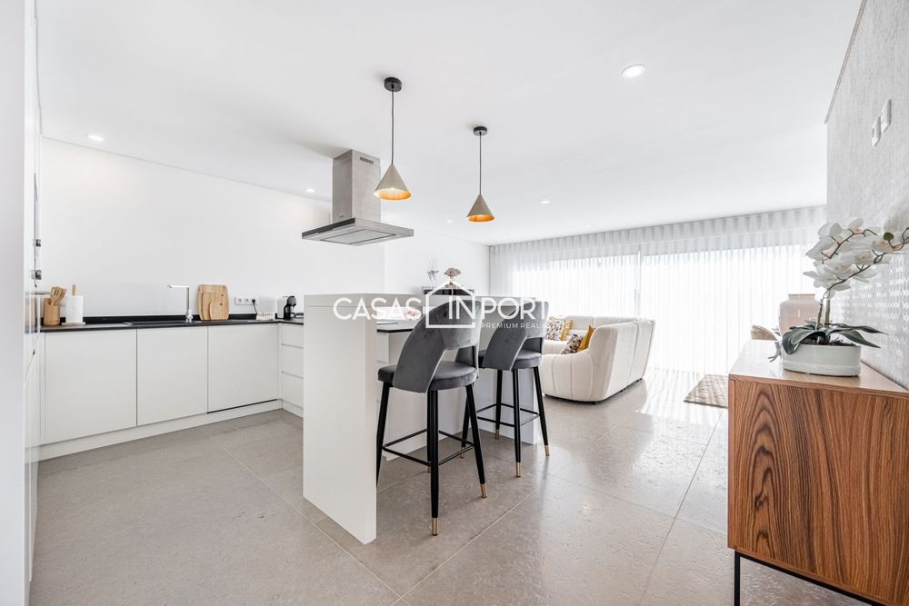 - Sala de jantar/sala de estar e cozinha, totalmente equipada, em open space, com acesso a um terraço;