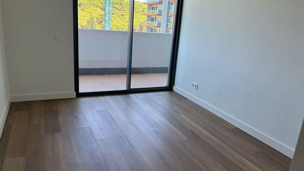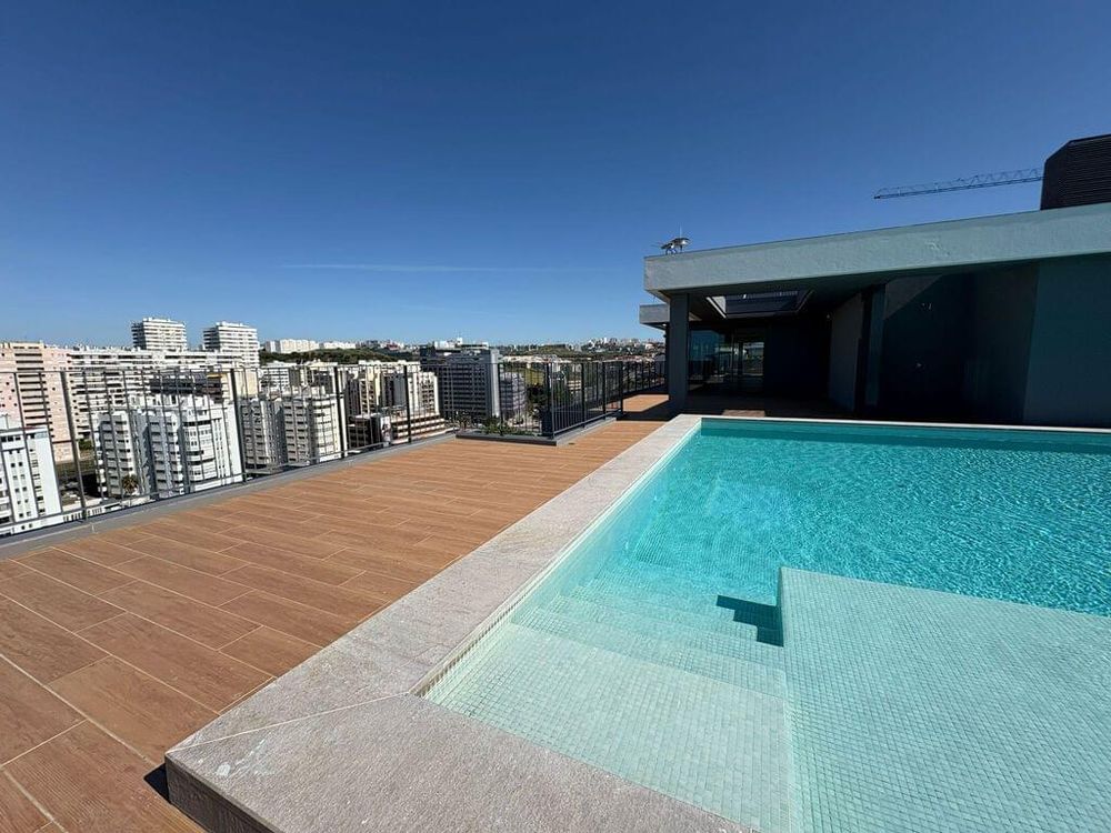 Apartamento T3 sem móveis, novo a estrear, em Miraflores, em edifício com piscina, sauna e ginásio.