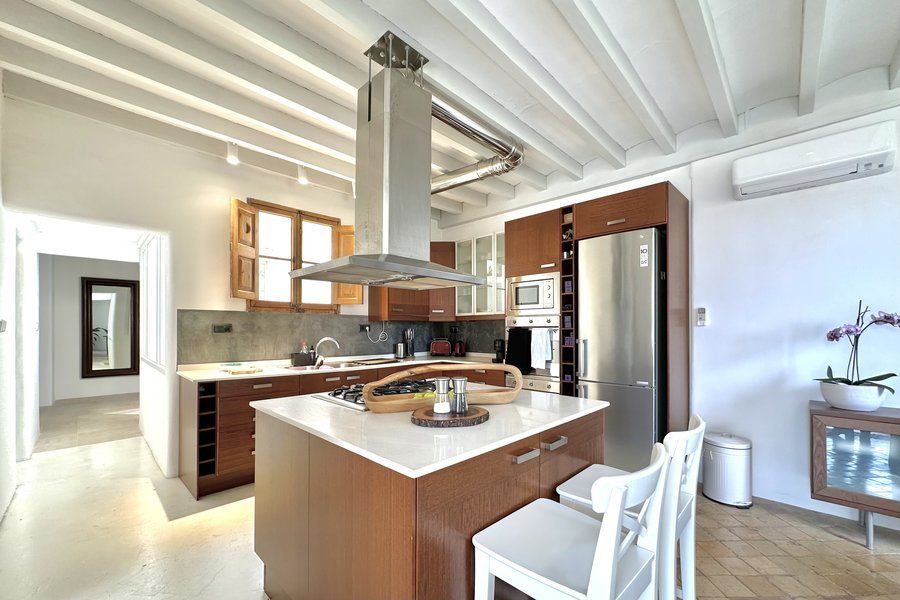 Available for temporary rental. Discover this modern and light-flooded duplex apartment in the sought-after La Llonja district of Palma. With three bedrooms and two bathrooms, one of which is en suite with a bathtub, this apartment offers the ideal space for comfort and relaxation. The elevator takes you comfortably to the third floor, where an idyllic and luxurious atmosphere awaits you. The air conditioning ensures pleasant temperatures all year round, while the entrance to the building offers plenty of space for bicycles. Located in a quiet street, this apartment is fully furnished and has internet access. High ceilings and a well thought-out design complete the overall picture and make this home an inviting retreat in the middle of the lively city of Palma.