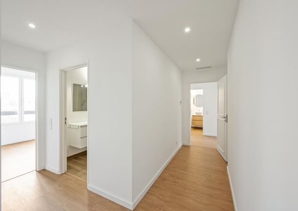 Apartamento totalmente remodelado, com dois lugares de estacionamento e equipado com ar condicionado e vidros duplos.