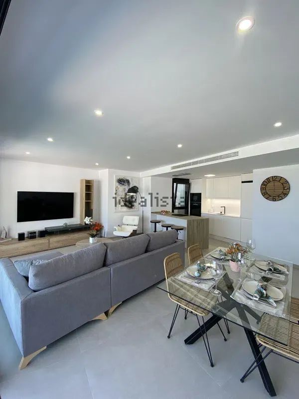 Vivienda de lujo completamente amueblada y adaptada con todo lo que necesitas oara una estancia comoda en la playa, dispone de dos dormitorios y dos baños y amplio salon con terraza viendo la playa.