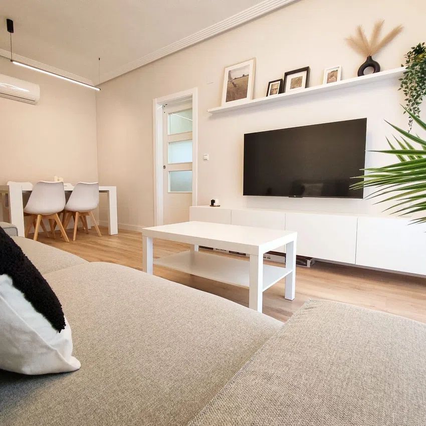 - Salón/comedor con acceso a balcón, equipado con aire acondicionado frío/calor, cómodo sofá y tv de 55".