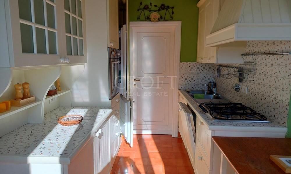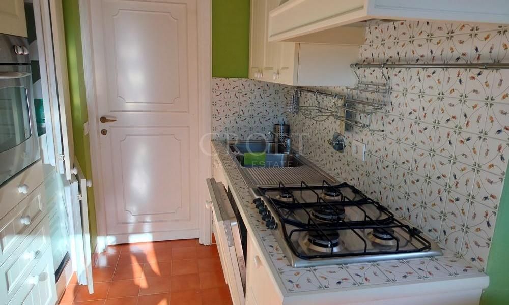 è accessibile tramite il soggiorno. Una cucina funzionale e completamente attrezzata con tutti gli elettrodomestici, con accesso anche essa alla grande terrazza del soggiorno