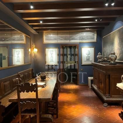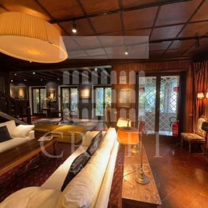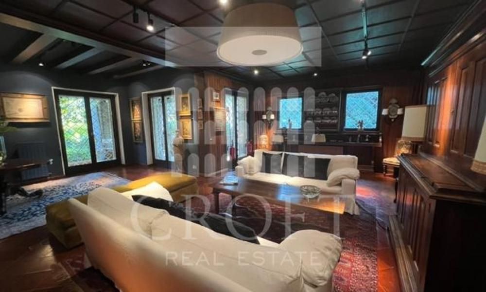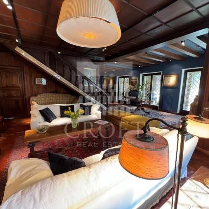 La villa ha poi un ampio salone mansardato al piano alto che ti porta nell' atmosfera di un cottage di montagna, dove un pianoforte a 1/4 di coda ed una stufa stube ,una ampia libreria in legno ti faranno vivere momenti unici.La villa è circondata da un parco esterno che ti farà vivere la città come se fossi in una bolla nel verde