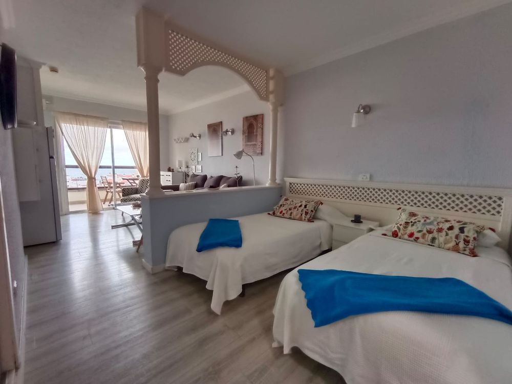 Se alquila por temporada de 11 meses precioso estudio con vistas al mar. Es una planta 6 distribuida en salón con cocina a la vista y salida al balcón, zona noche parcialmente separada y baño completo con plato ducha. El apartamento es muy practico y bien amueblado, tiene un gran armario empotrado, una coqueta zona de estar con gran sofá, cocina equipada y espacio cerrado para almacenar en la terraza. El edificio cuenta con ascensores y está adaptado para personas con movilidad reducida, asegurando que todos puedan disfrutar de su comodidad. Ubicado en una zona rodeada de todos los servicios y comodidades.