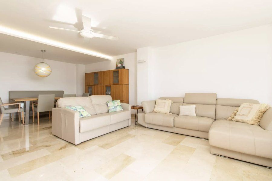 Available for temporary rental. This spacious flat with sea views is located in Foners, a central neighbourhood of Palma, just a few steps from the Paseo Maritimo and the beach. It is located on the eighth floor of a building with lift and concierge. The living area is approx. 190 sqm, complemented by a 10 sqm terrace. The flat comprises a bright living/dining room, a kitchen with utility room, four bedrooms with fitted wardrobes, a bathroom with bathtub and two more with shower. The master bedroom has a dressing room. From the living room there is access to the terrace, which is ideal for relaxing with sea views. The old town and the Portixol neighbourhood are just a few minutes away.