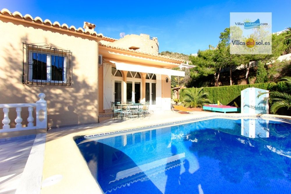 Villa with private pool and sea and mountain views, just 500 m from Cala Moraig. Quality home, in perfect condition, with a Mediterranean style combining classic and modern design. 5 bedrooms, 4 bathrooms, 3 floors + solarium.