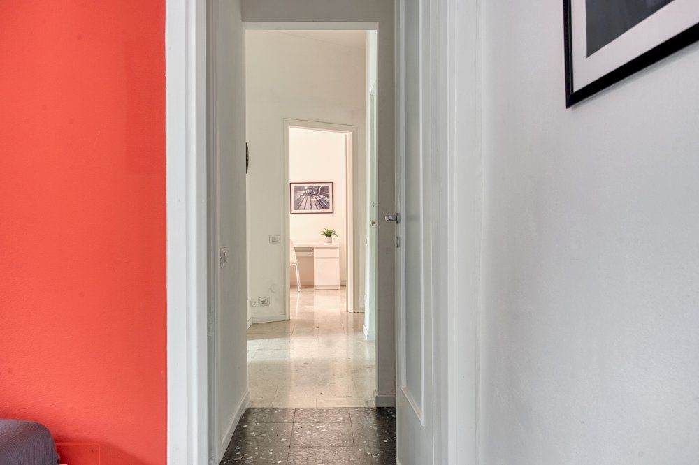 The room features a French bed and is spacious and well-equipped, ideal for university students or young professionals. It includes a desk, a bedside table with lamp, a wardrobe with drawers, and a large window that fills the space with natural light.