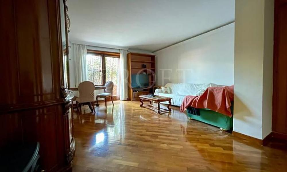 Questo appartamento di circa 120 mq interni, inserito in un elegante palazzo, si distingue per i suoi 100 mq di spazi esterni privati, perfetto per rilassarsi o intrattenersi. Mentre l'arredamento ha uno stile più classico, non c'è niente di meglio dell'incredibile posizione e della generosa planimetria. Una casa confortevole in una posizione privilegiata!.