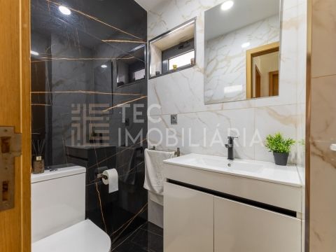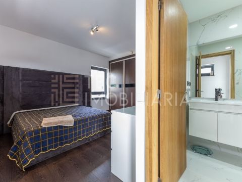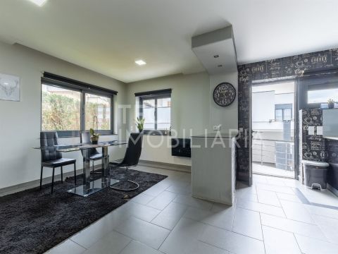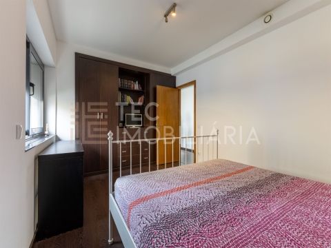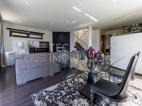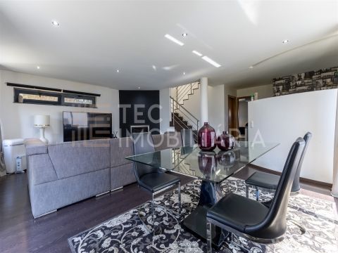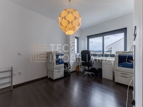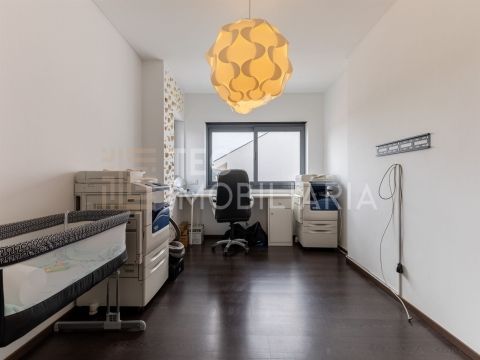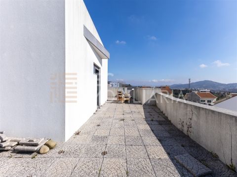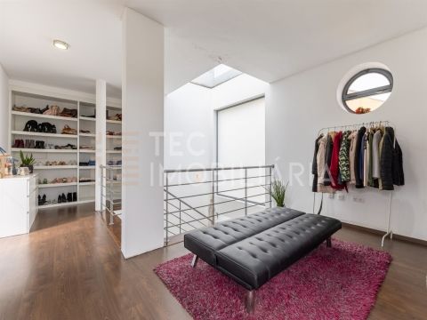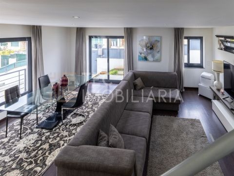 Um sal�o amplo com casa de banho e com acesso a um fant�stico terra�o com vistas panor�micas para a Serra de Valongo e Cidade.