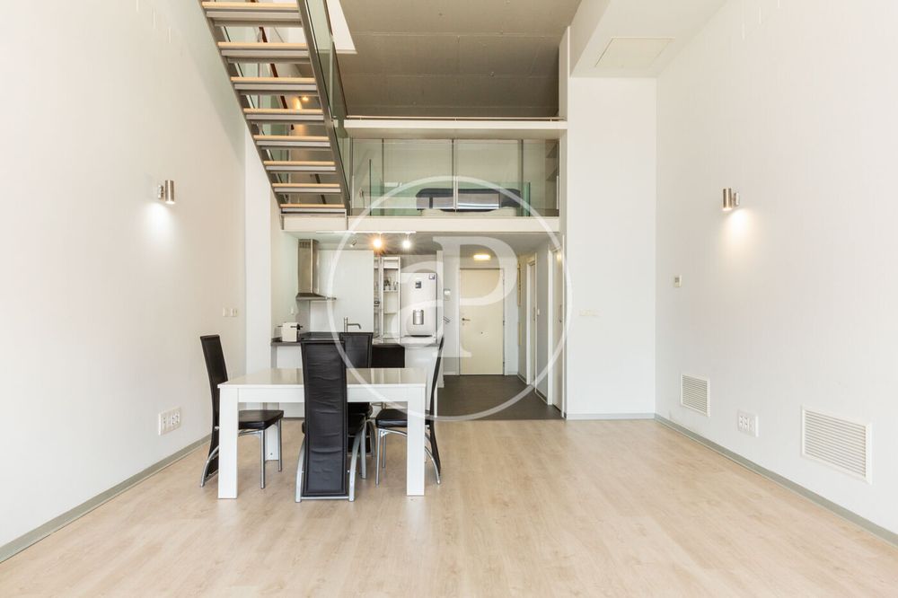 aProperties presents this charming top-floor loft-penthouse with 110 m² distributed across three levels. On the first floor, you’ll find a fully equipped open-plan kitchen, a bright living-dining room with direct access to the balcony, a bathroom with shower, and a pantry/storage room. From this area, you can access the two upper levels. On the first upper floor is the master bedroom, featuring a storage bed with lift-up base and a built-in wardrobe. Continuing upwards, you reach the spacious open terrace, offering breathtaking views thanks to its height and unobstructed location. This loft-penthouse includes ducted hot/cold air conditioning, parquet flooring, and a large aluminium window that fills the home with natural light. The community fees include water. Located in the "ROS CASARES" Business Park, next to the Gran Turia Shopping Centre, the residential complex offers beautiful communal green areas. The presence of a community pool adds a refreshing touch, making it perfect for summer enjoyment. The building features an elevator and concierge service, and a parking space is included in the price. Pets are not allowed. If you're looking for a modern design in a peaceful setting, this loft-penthouse will impress you. In short, it's a unique and appealing property that can be enjoyed all year round. If you are interested in viewing this property, don’t hesitate to contact us. We’ll be happy to assist you.