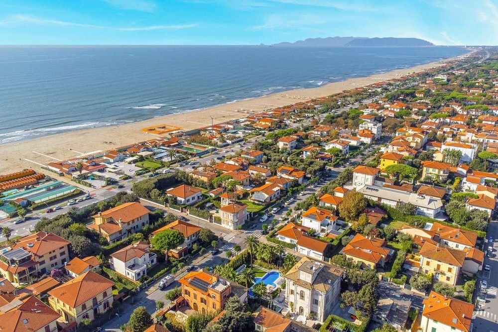 Exclusive villa in the heart of the center of Forte dei Marmi, a few meters from the beaches. This elegant residence is ideal for those who want elegance and uniqueness just a few steps from the sea, in one of the most prestigious areas of Versilia. Located just 50 meters from the beach, the villa is immersed in a private garden of about 800 square meters, perfect for spending days outdoors between large porches and terraces, ideal for al fresco lunches and moments of absolute relaxation. The property, of about 370 square meters, is spread over two levels. On the ground floor, an elegant entrance leads to a large living room with a living area, a living room with a marble fireplace, a dining area, and a spacious and well-equipped kitchen. The layout is completed with a double bedroom with private bathroom, a guest bathroom, a single bedroom, as well as a functional cellar. The living room leads to a large veranda where you can enjoy the outdoor spaces throughout the day, in front of a verdant garden On the upper floor, accessible via a refined marble staircase, a large hallway leads to the left to the first double bedroom, complete with en suite bathroom and access to a spacious terrace with sunbathing area. The hallway also leads to four other bedrooms, one of which has a walk-in closet and private bathroom, while an additional bathroom conveniently serves the remaining bedrooms. Spacious terraces surround the entire floor, offering access to panoramic views and private corners to enjoy the tranquility of the landscape. In addition to its exclusive location and proximity to the center of Forte dei Marmi, this villa offers the perfect combination of tranquility and comfort, made even more pleasant by the greenery that surrounds it. It is the perfect opportunity for those who want an elegant and spacious home just a few steps from the beaches and the best clubs in the area, where privacy and luxury coexist harmoniously. CIN: IT046013C2OTENERR3 Property for EXCLUSIVE SALE by Coldwell Banker agency. For privacy reasons, the address on the card is indicative and the property is in any case located in the immediate vicinity