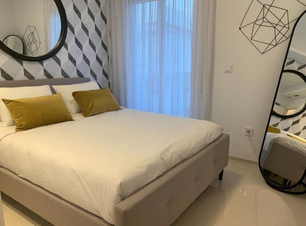 On the main level of the villa you have the living/dining room with fully equipped open kitchen, toilet, a terrace and a nice private garden and a private parking space.