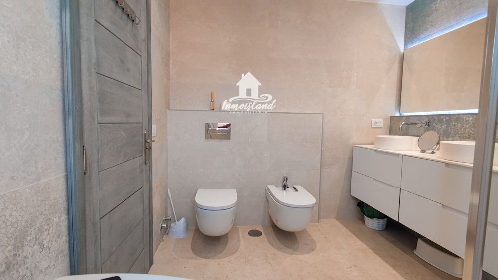 En la planta superior tenemos 3 dormitorios, cada uno baños privado, televisión y terraza independiente. Tiene una pequeña zona de estudio en el hall de esta plantas.