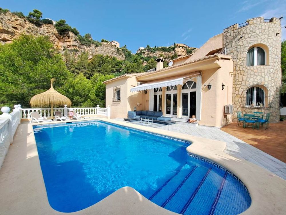 Villa with private pool and views of the sea and mountains, just 500 m from Cala Moraig. A high-quality house, in perfect condition, designed in a Mediterranean style with a combination of classic and modern design. 5 bedrooms, 4 bathrooms, 3 levels + solarium.