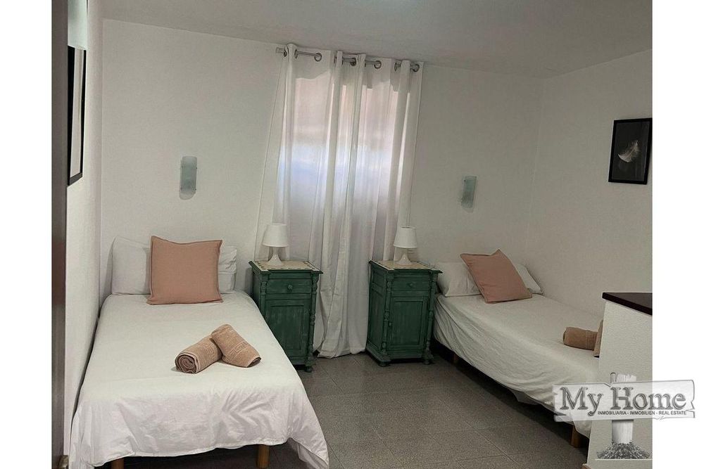 Renovated duplex style bungalow in second line of Playa del Inglés beach. On the main floor you have a good size front terrace facing the communal garden, living room area, independent kitchen, complete bathroom with walk in shower and another small terrace on the back. On the top floor there are two spacious double bedrooms, bathroom and a balcony with views over the communal pool area. Just steps away from the beach promenade.