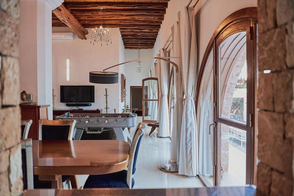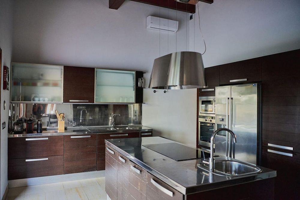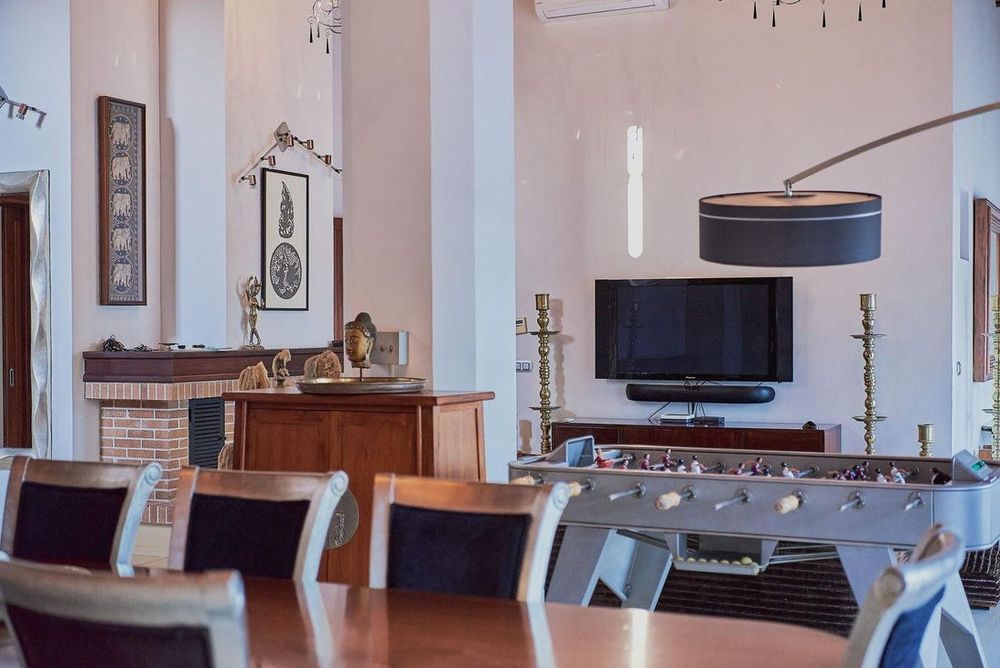 Located in a privileged position, halfway between Santa Gertrudis and Ibiza Town, this villa combines privacy, spaciousness and an excellent connection to the key points of the island. Just a 10-minute drive away are the port of Marina Ibiza and Talamanca beach. The property sits on a large fenced plot with Mediterranean gardens, several covered terraces and an 18-metre rectangular swimming pool, surrounded by Balinese beds, hammocks and chill out areas. An outdoor bathroom serves the pool area, ideal for outdoor living. Access to the house is through a porched terrace that leads to a hall, perfect as a hall or office. From here there is an impressive living room with five-metre ceilings and large windows that connect to the main terrace. In the left wing, the master suite has an en-suite bathroom and direct access to the terrace that leads to the pool. In this area there are also two double bedrooms that share a bathroom with a jacuzzi, as well as an auxiliary or service room with access from the bathroom. In the right wing, a spacious kitchen with island and direct access to the outdoor kitchen with barbecue invites you to enjoy meals outdoors. Here you will also find another bedroom with two double beds and a bathroom with shower. The villa also has a separate laundry area, a closed garage with automatic gate and air conditioning, which offers the possibility of being used as a gym or other versatile space.