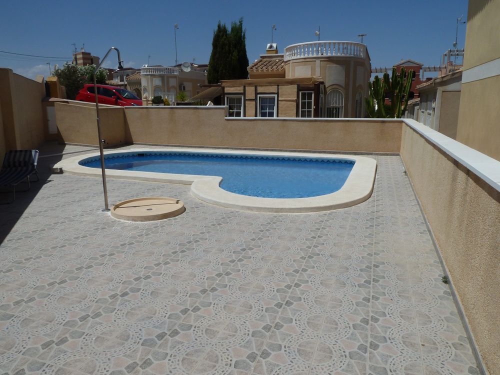 This is a south facing, detached, two bedroom bungalow with a large private solarium and garden. The property is located within easy walking distance of the bars and restaurants of La Fuente. The blue flag beaches of the Orihuela Costa are a short drive away.