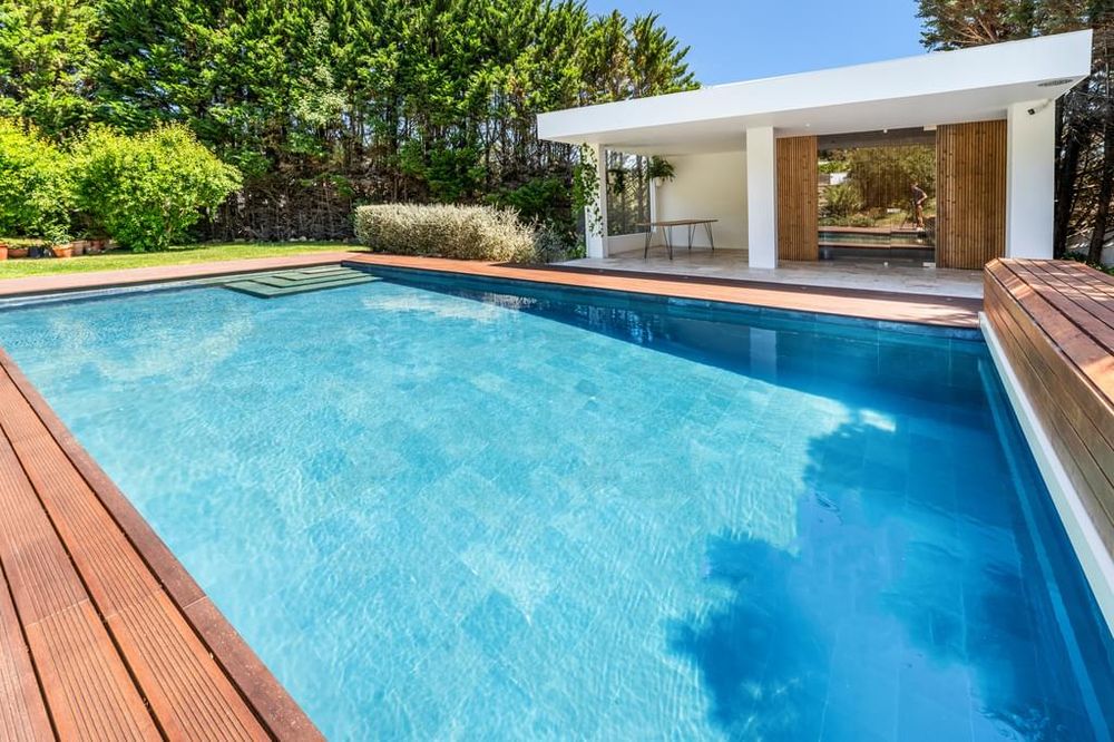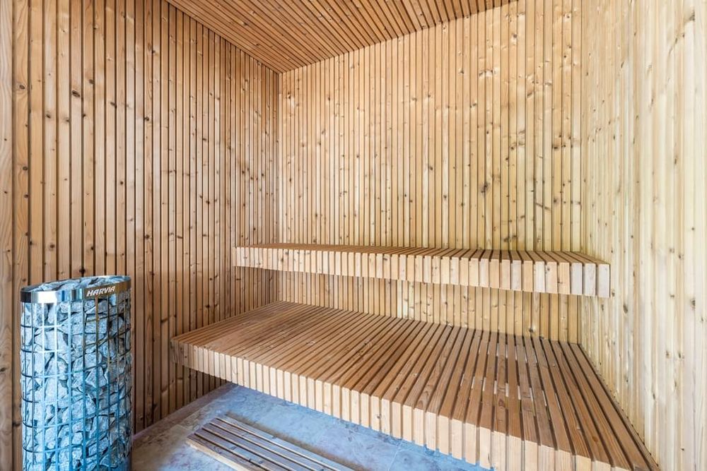 - Saltwater swimming pool, with a support area including a kitchen, sauna, and bathroom